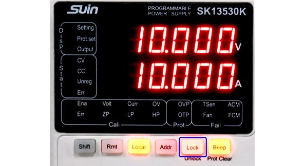 Keypad locked function is available for SK10000 Series to avoid wrong measurement or damage to the power supply due to misoperation.