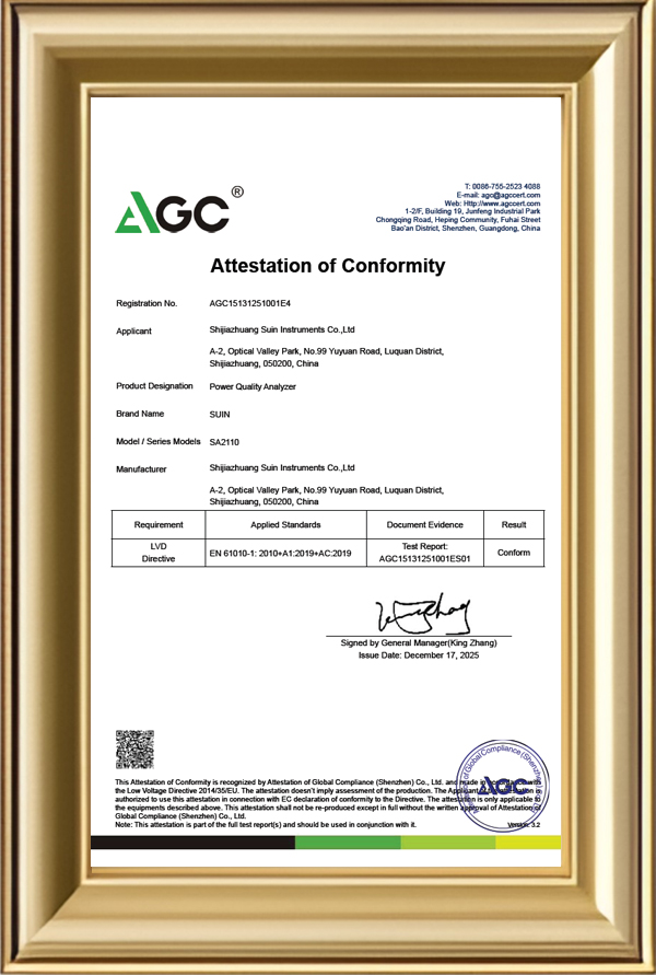 SUIN Instruments Co., Ltd is a high-tech company and concentrates on R&D, production, test, sales and service of test & measurement instruments, electrical products, application software, etc. It already won below titles depending on the super technical advantage: High-tech Enterprises in Hebei Province, Hebei Industrial Design Center, Hebei Academician Workstation, Shijiazhuang Industrial Design Center, Engineering Research Center of Shijiazhuang electrical test instrument, Shijiazhuang Enterprise Technical Center, China's Key Enterprises in electronics instruments industry.