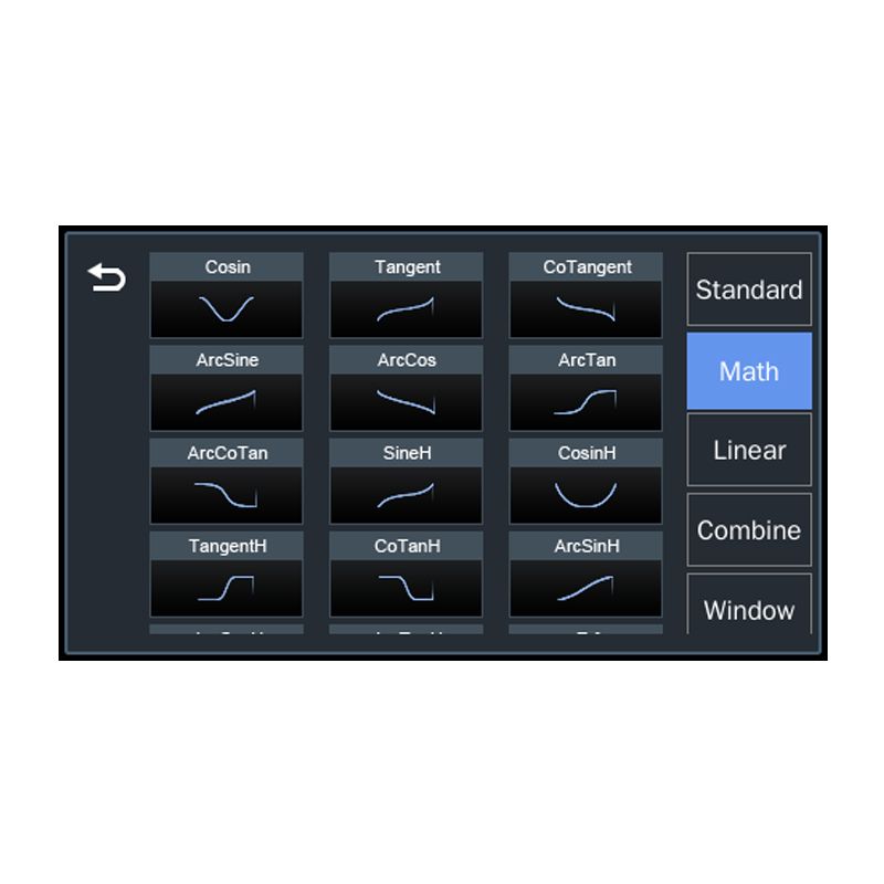 | Type | 166 kinds include: Sine, Square, Ramp, Pulse, Noise, DC, PRBS, user-defined | ||||