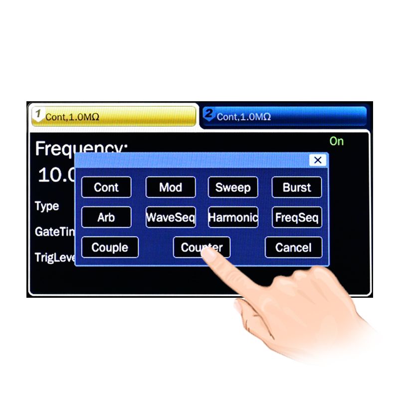 Built-in 300 MHz frequency counter, with 8 digits/s measuring resolution can conduct the frequency, period, pulse width and duty cycle measurement.