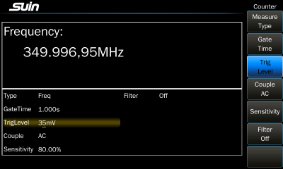 8-digit hardware frequency counter with statistics function and input range of 1mHz – 350MHz.