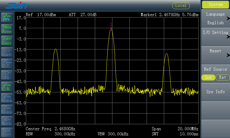 | SD3201T Transmission System | Output Power: ≥8 dBm 1 dB Compression Point Power: ≤13 dBm(typ.) Carrier Frequency: CH1: 2468 MHz CH2: 2476 MHz CH3: 2484 MHz CH4: 2492 MHz CH5: 2500 MHz CH6: 2508 MHz Local Oscillator Suppression: ≤-40 dB (to 2399 MHz Local Oscillator) |