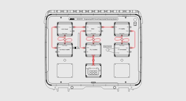 | SD3201R Receiving System Experimental Case | composed of 7 pcs MV circuit modules: low noise amplifier, automatic gain control circuit, PLL oscillator, channel selector, TV demodulator, mixer, IF amplifier |