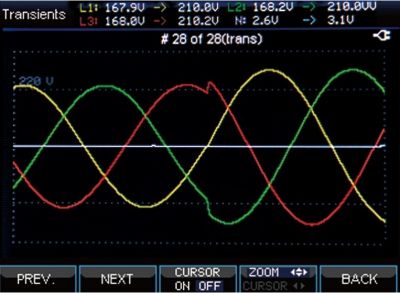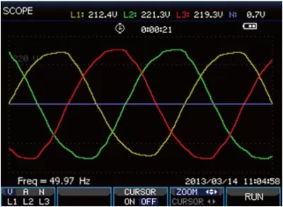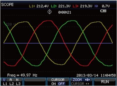 View the voltage/current waveform and readings. Cursor Zoom function.