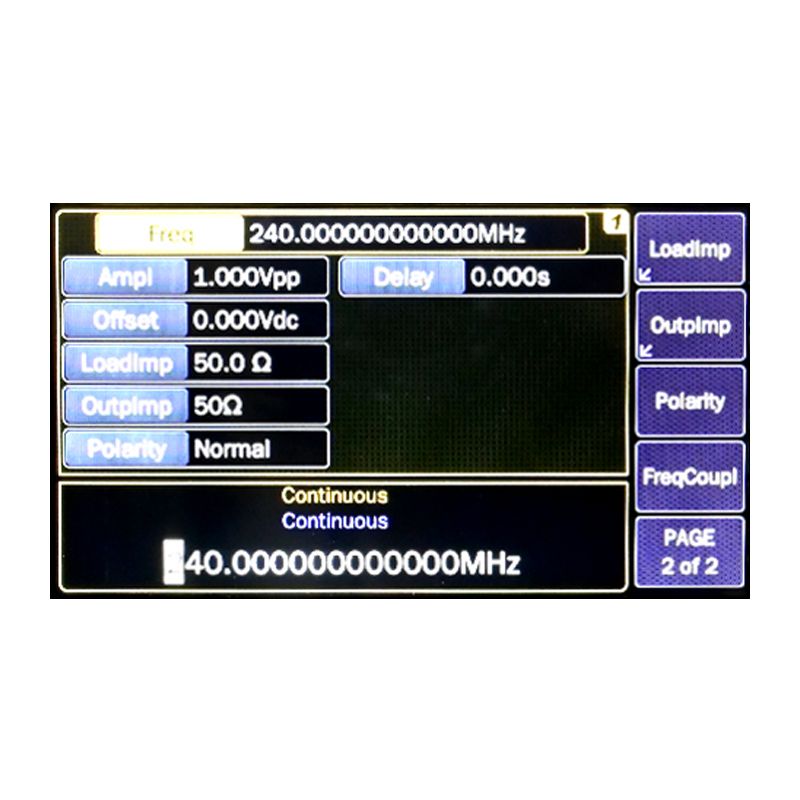 | FSK | Carrier waveform: Sine, square, ramp, arbitrary Internal modulation:50% square FSK rate: Internal: 1mHz~50MHz, External: DC~10MHz Frequency Range: 1mHz~240MHz | ||||