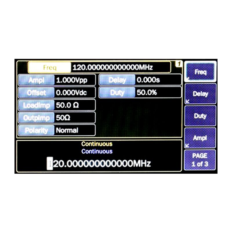 Pulse, square and arbitrary waveforms can be up to 120 MHz.